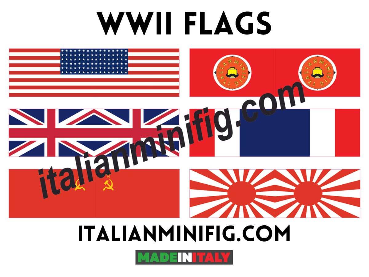 The historical flags of the Second World War by Italianminifig are stickers that reproduce the national flags of six of the nations involved in the conflict between 1939 and 1945.