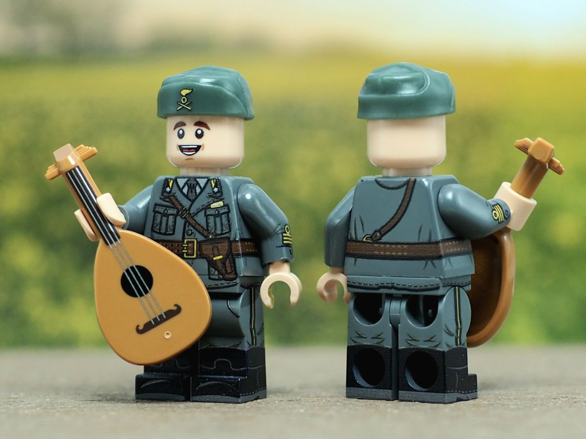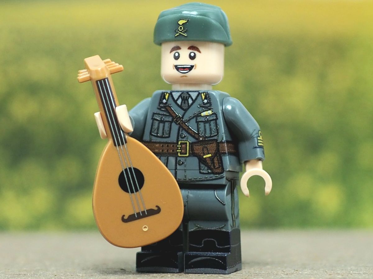 Printed in 360° on genuine Lego base, the figure wears the WW2 Italian officer uniform, complete with side cap and his signature mandolin, symbol of his romantic spirit.