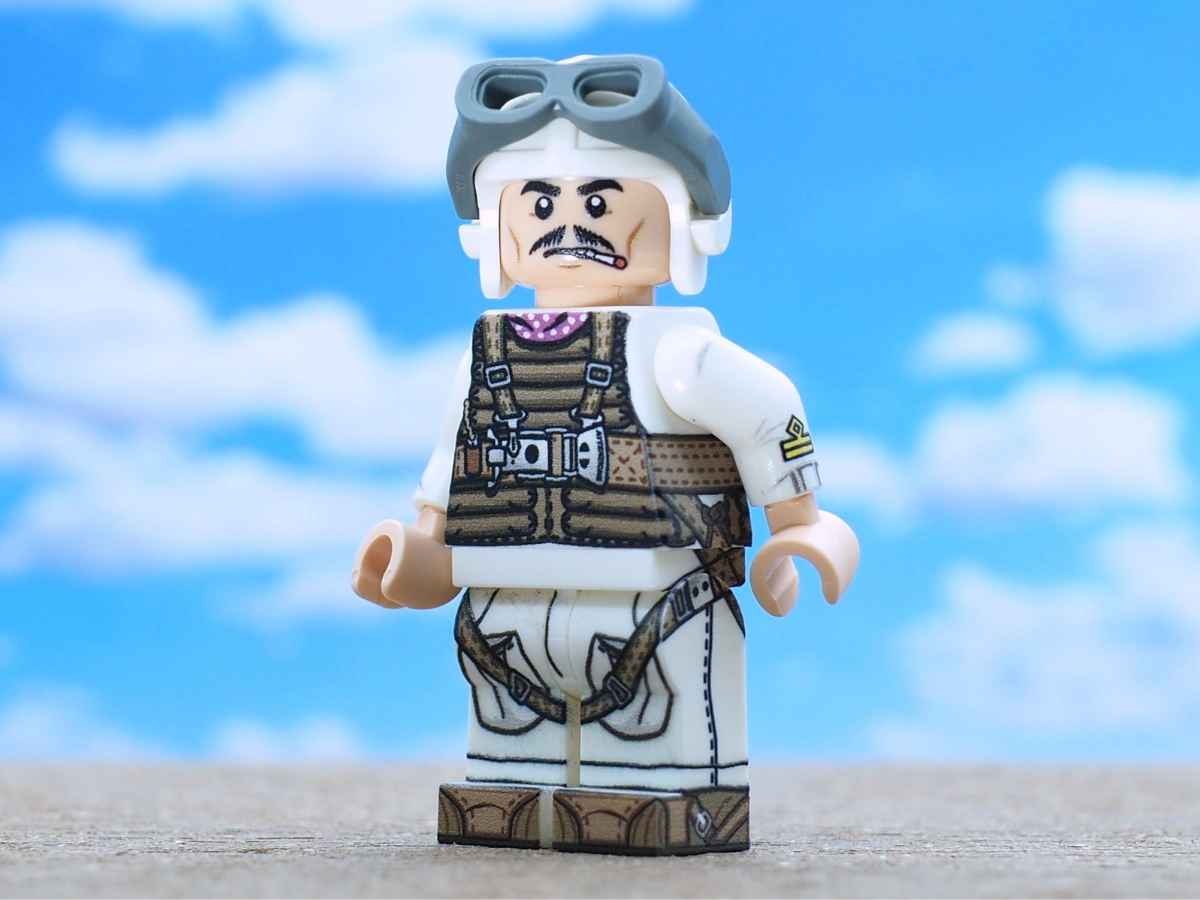 The Italianminifig minifigure faithfully recreates a pilot of the Italian Royal Air Force (Regia Aeronautica) from the 1930s.