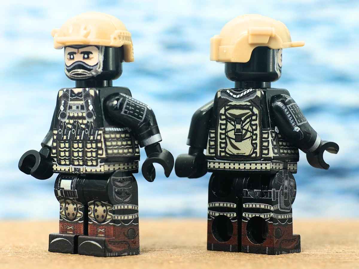 The minifigure of the unit specializing in amphibious operations and maritime security support— featuring a highly detailed uniform with 360° printing on an original LEGO piece — is sold complete with a tactical helmet.